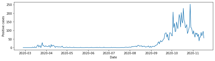 The good news is that there is no real difference between plotting our simple data and a proper health data set. For example to plot positive cases in Groningen:
