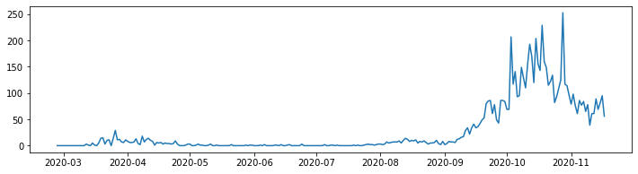 line_plot = ax.plot(neth_covid.loc['Groningen']['n']['total_cases'])